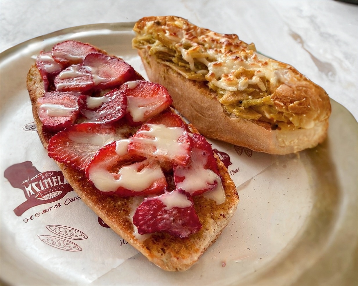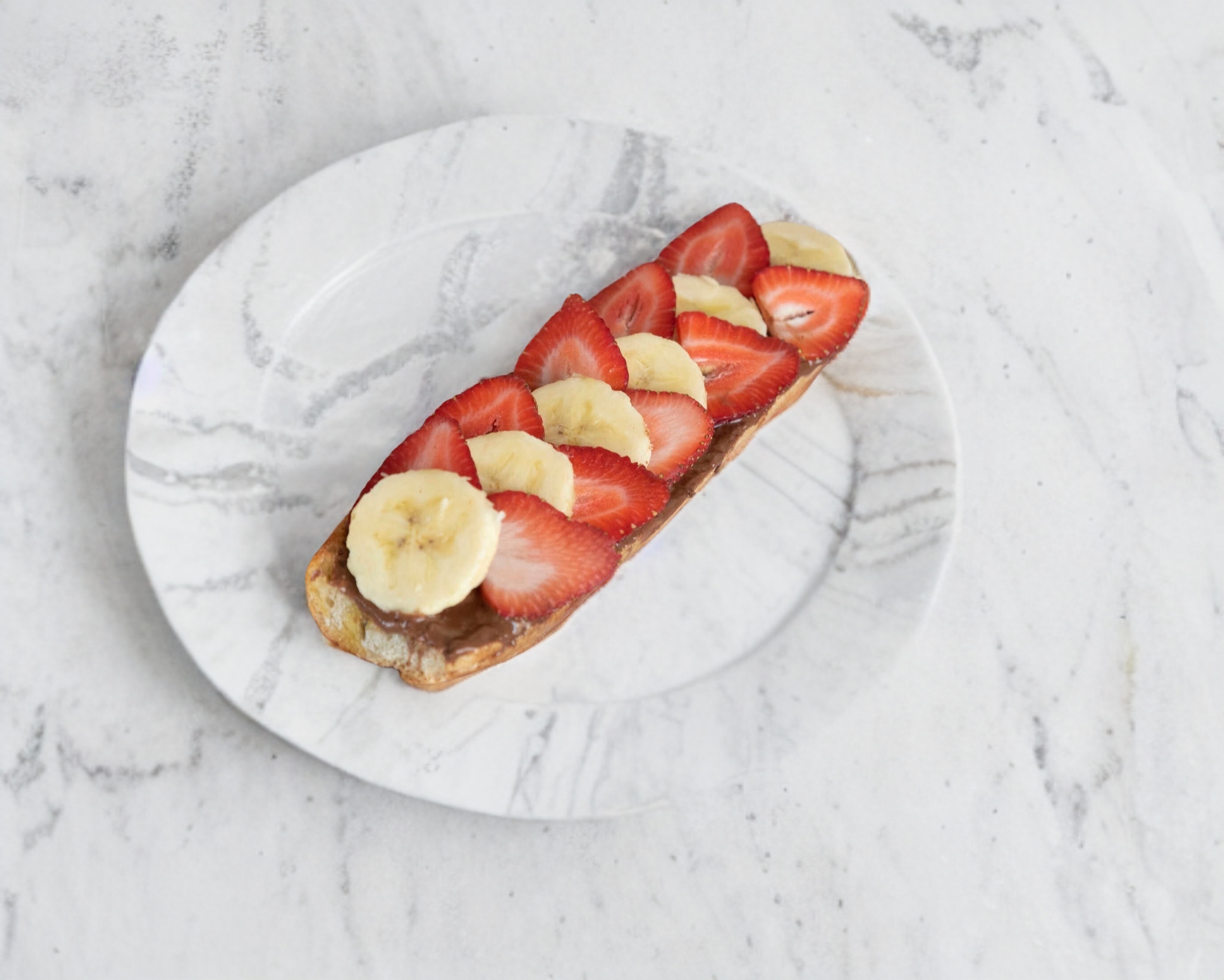 mantequilla, nutella con fresa y platano/ Presentación de una pieza