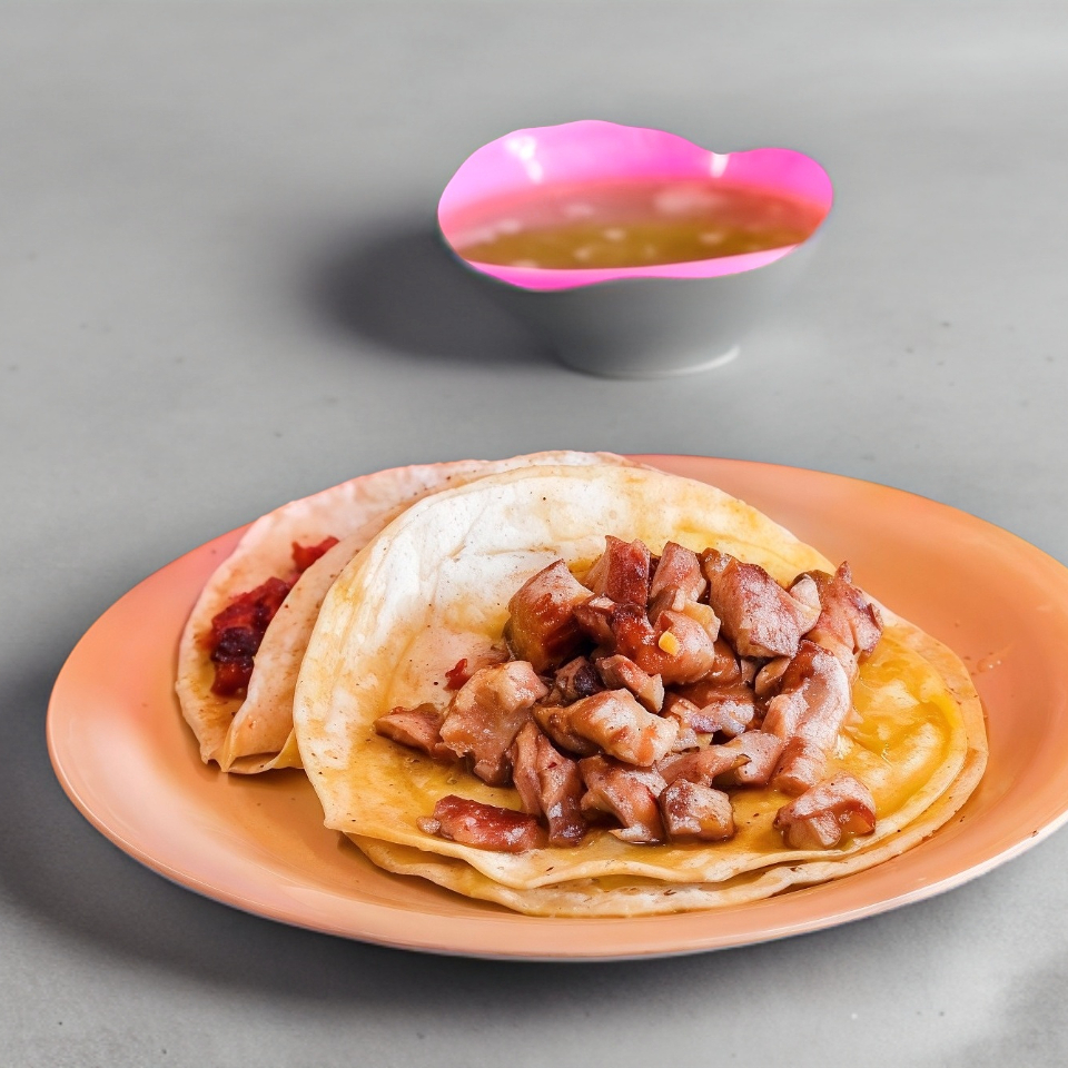 Delicioso Taco de Barbacoa con doble tortilla acompañado de salsas aparte cebolla y limón.