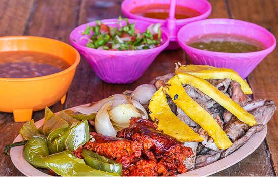 Para 4 personas. Incluye: DELICIOSA CARNE Y CHORIZO ASADO, ACOMPAÑADO CON CEBOLLA, NOPALES Y PIÑA GUISADAS, CHILES TOREADOS, TORTILLAS Y SALSAS