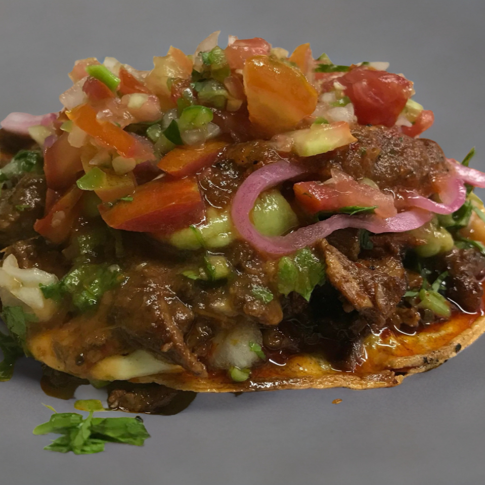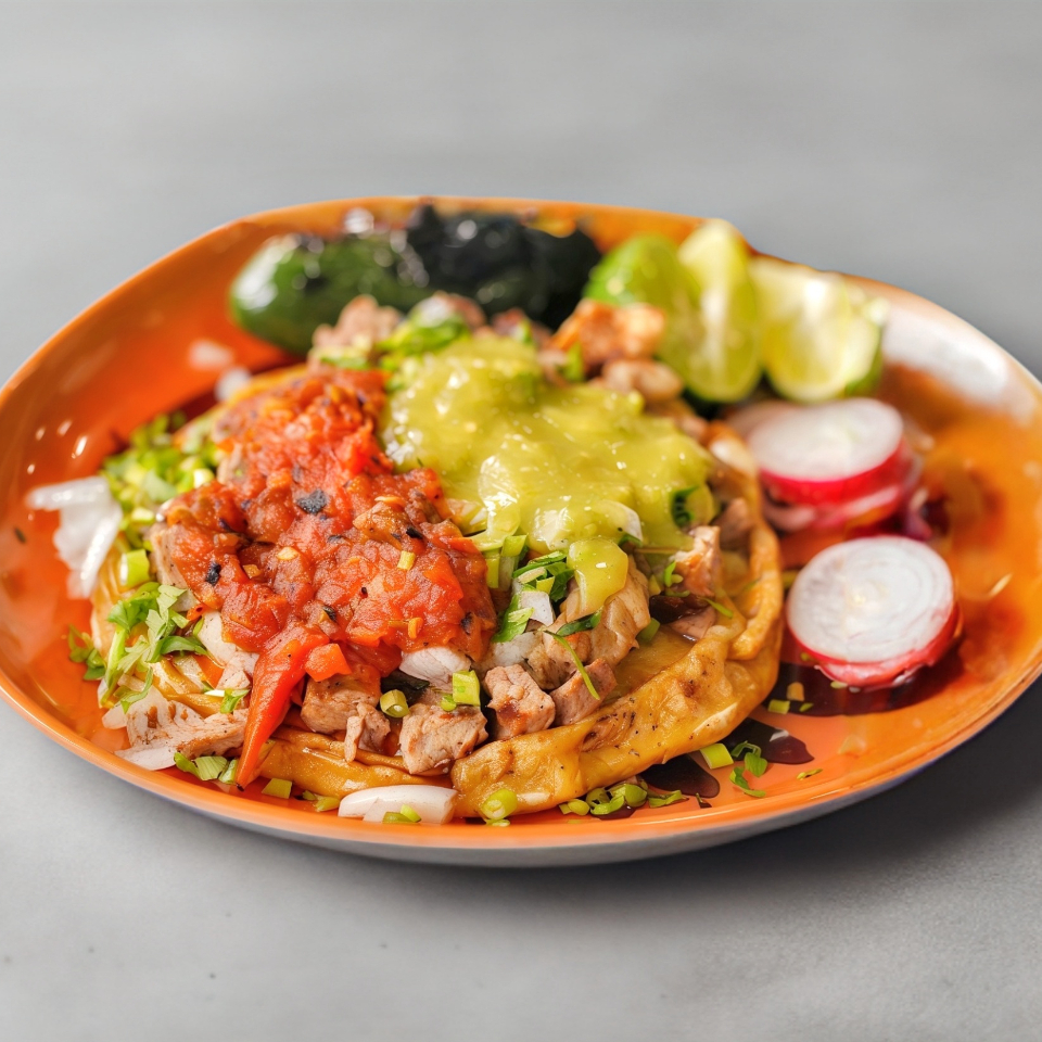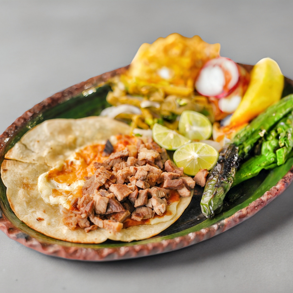 Deliciosa quesadilla con tortilla de harina y jugosa carne de cerdo adobada.