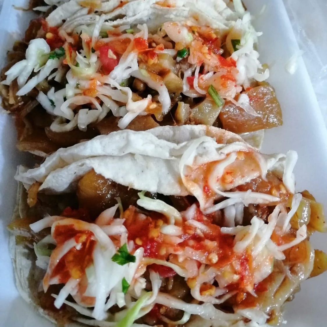 taco de tripa de cerdo acompañado de salas y verdura chile en vinagre