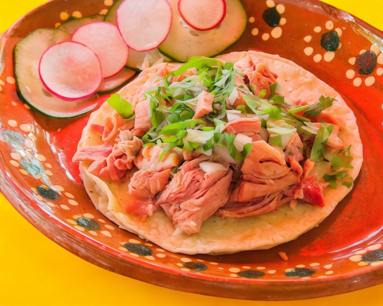 Taco Blando: Tortilla de maíz ,,carne ,salsa de ,chile y salsa tomate