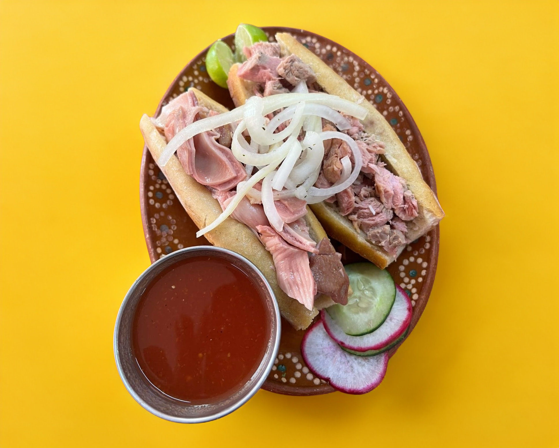 Incluye salsas, verduras y limón.