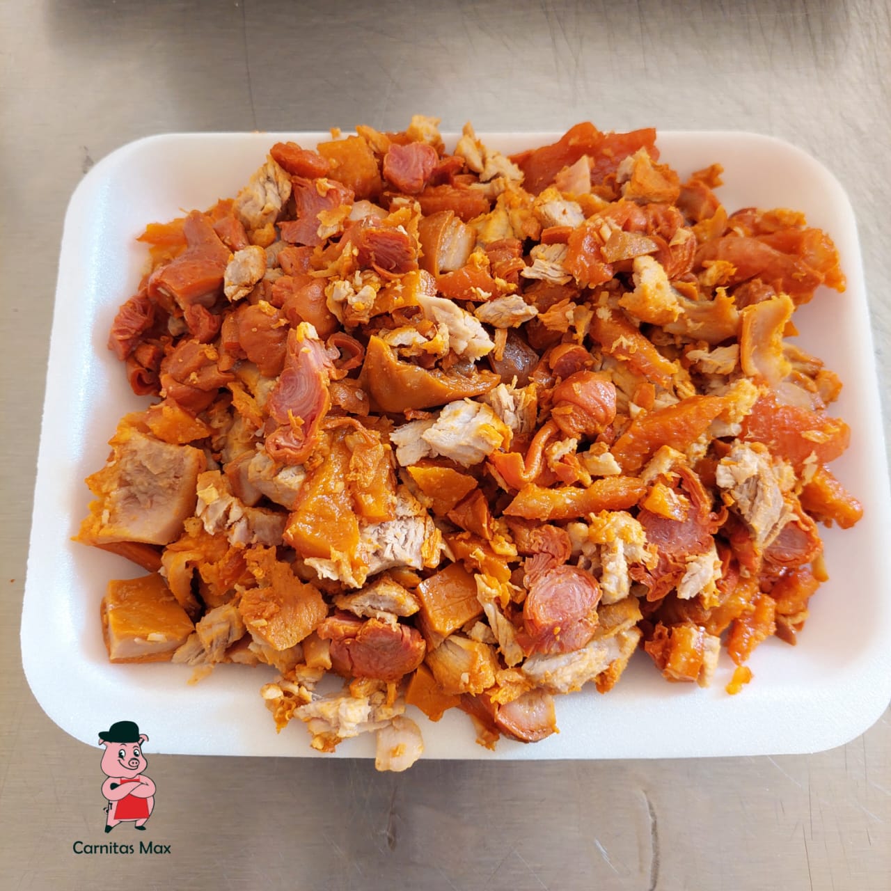 ½ kg de carnitas, ½ kg de tortillas de maíz y 1 refresco de 2 litros. Acompañado de salsa mexicana y salsa picante.