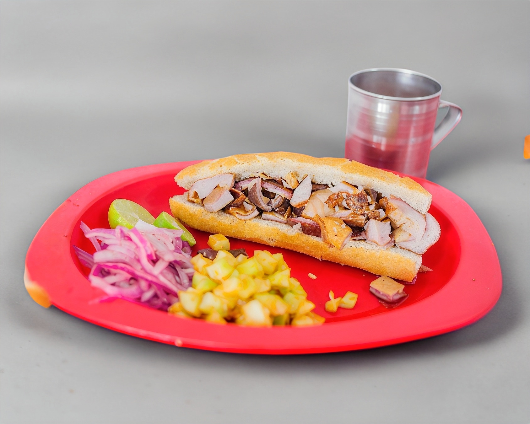 Torta Ahogada Carnitas + 2 Tacos Dorados Sencillos