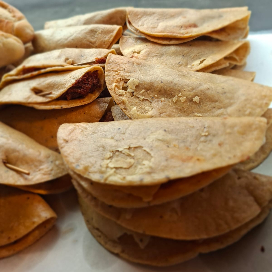 TACO DORADO DE FRIJOL O PAPA CON LA CARNE QUE DESEE