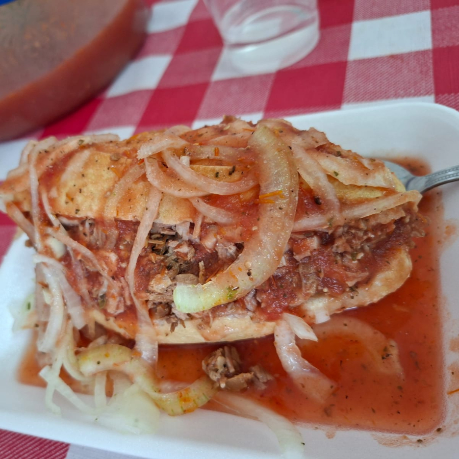 BIROTE SALADO EMBARRADO DE FRIJOL, RELLENO DE CARNE DE SU ELECCION. (CARNITAS, BUCHE, CUERITO, LENGUA O CHICHARRON)