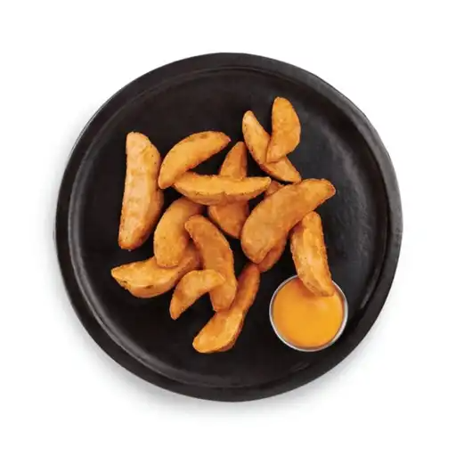 Papas fritas cortadas en gajos con harina, paprika y sal.