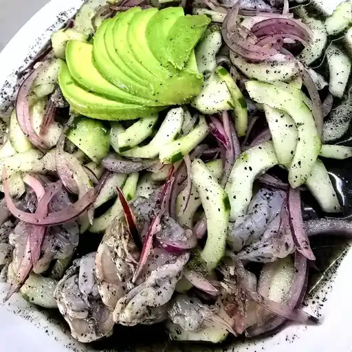 Ceviche tradicional de Mazatlán preparado con pescado de sierra, porción a elegir.