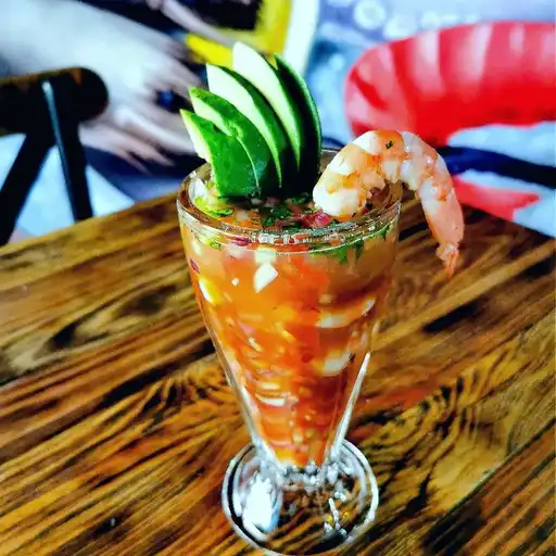 Cóctel preparado con camarón, salsas de la casa, cebolla, jitomate y pepino, tamaño a elegir.