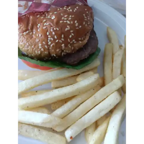 Hamburguesa de carne 100 de res, con un toque de aderezo chipotle, queso amarillo lechuga jitomate y cebolla, acompañada de papas a la francesa crujientes, que te dejará con ganas de más.