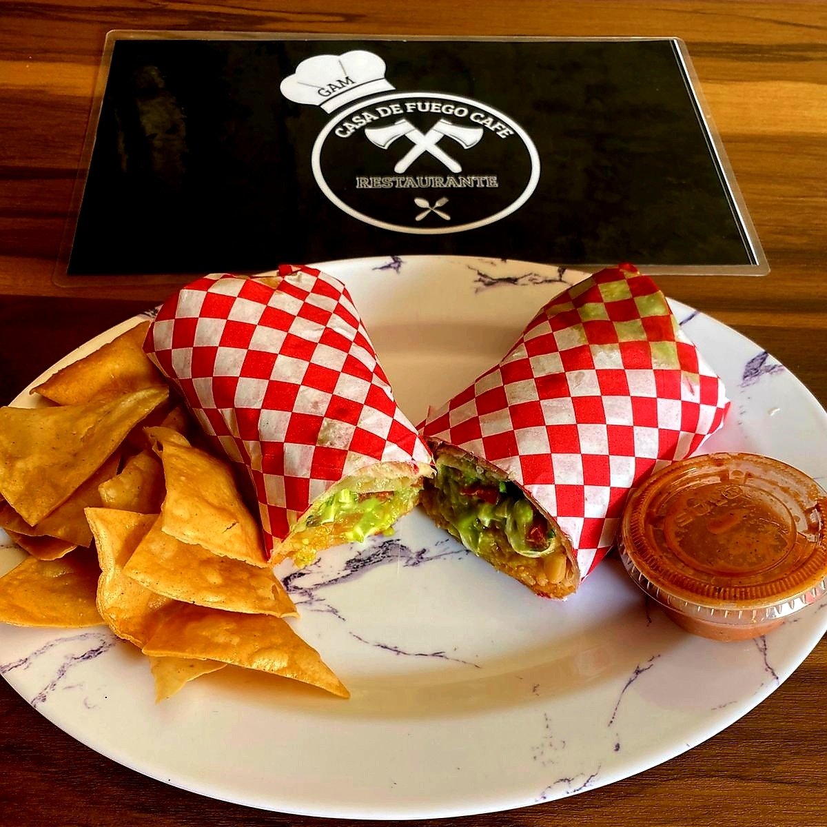 torilla de harina jumbo con queso gratinado, frijoles fritos, arroz, salsa mexicana, crema, aguacate, con proteina a tu eleccion de res, pollo, chorizo