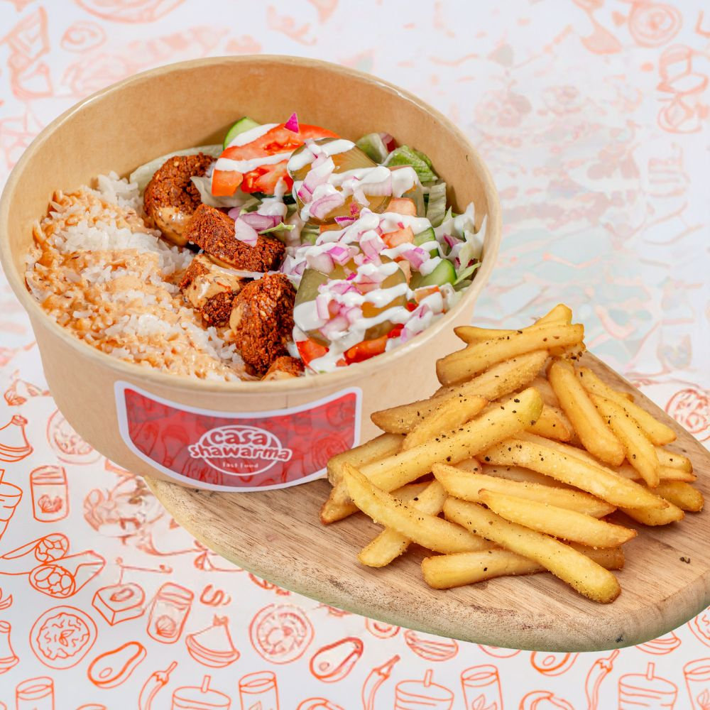 El combo perfecto para antojo grande 🍟🌯 Elige tu bowl shawarma favorito y acompáñalo con papas a la francesa crujientes.
