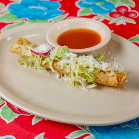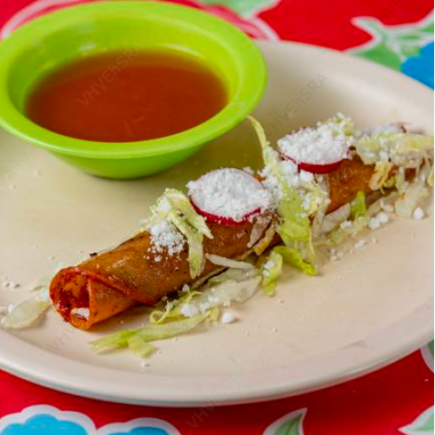 Tacos enrollados de tortilla de maíz, fritos y crujientes.