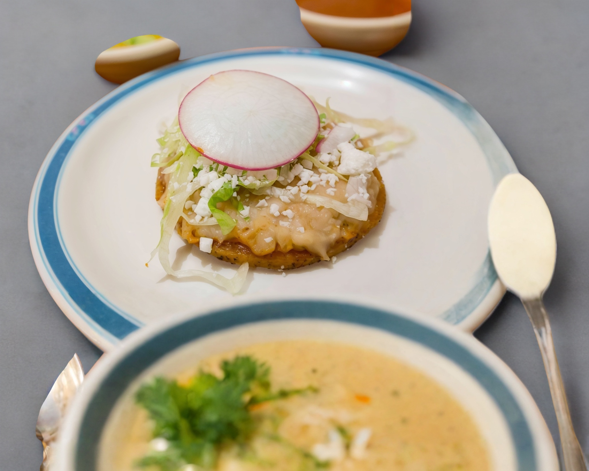 Pozole 1 L acompañado de verduras, lechuga, rabanos, cebolla, tostadas, limón y salsa picante.