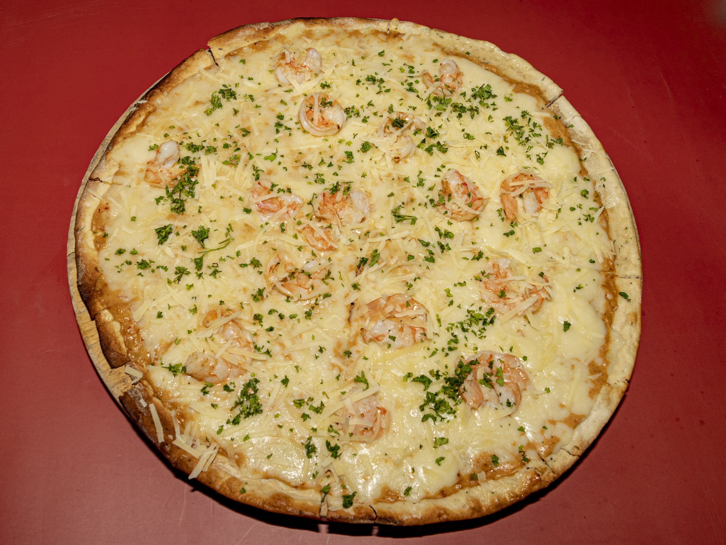 Hecha con salsa Alfredo casera, mucho queso gratinado, camarones a la mantequilla con parmesano y perejil.