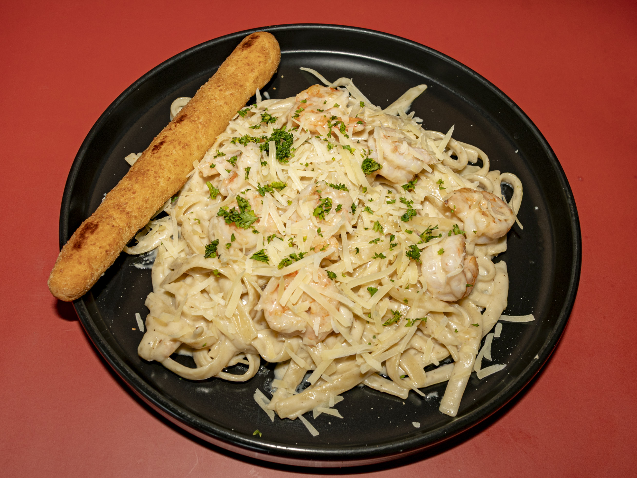 El clásico fetuccine alfredo con camarones, al mas puro estilo Chai, con mucho parmesano.