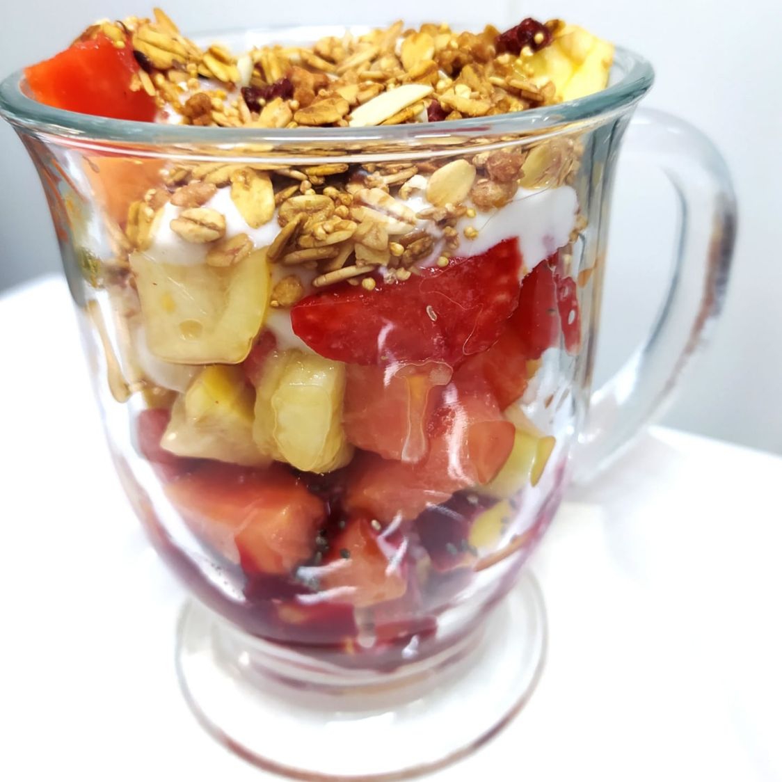 Deliciosa combinación de fresa frambuesa y zarzamora y cereza acompañados de crema batida