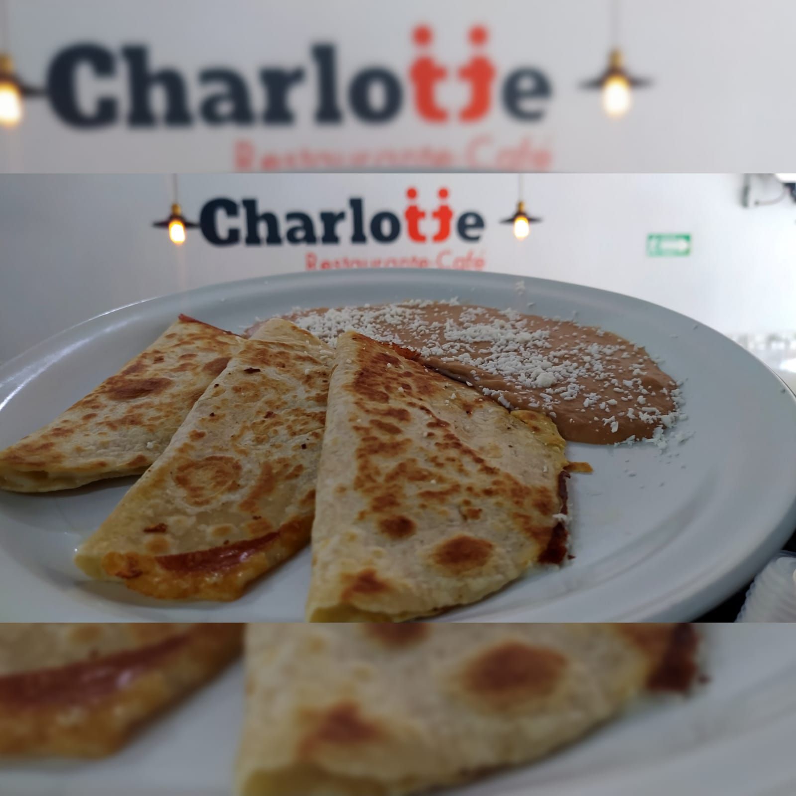 2pzas de tortilla de harina con queso Oaxaca, cebollita guisada y tu proteína favorita, acompañada de guarnición de frijoles