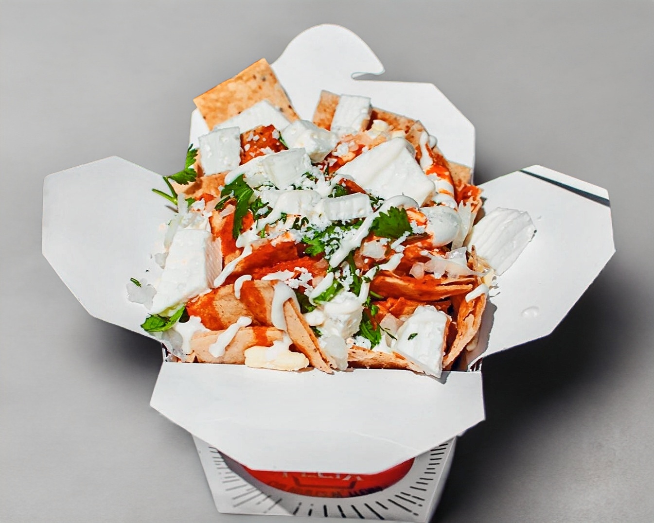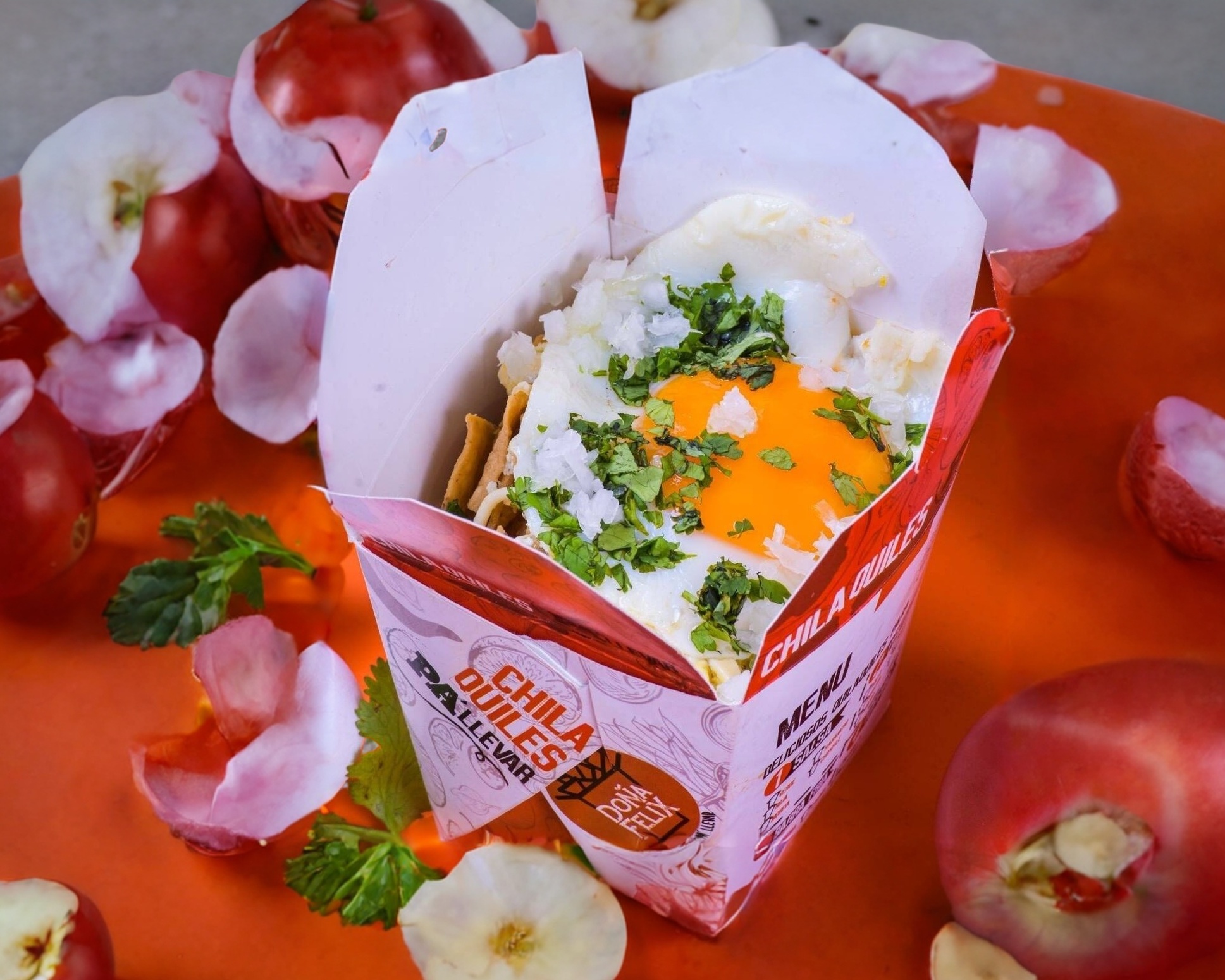 Chilaquiles con proteína a elegir (arrachera, pollo, huevo, panela o chorizo) mas 2 huevos.