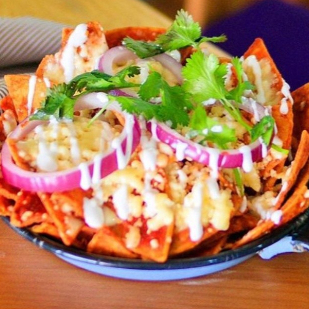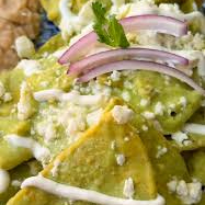 Deliciosos chilaquiles Acompañados De queso crema y cebolla( Favor de indicar Si no desea algún ingrediente ¿O cómo lo Desea preparado En caso de los huevos ya sea en tiernitos bien cocidos O revueltos)