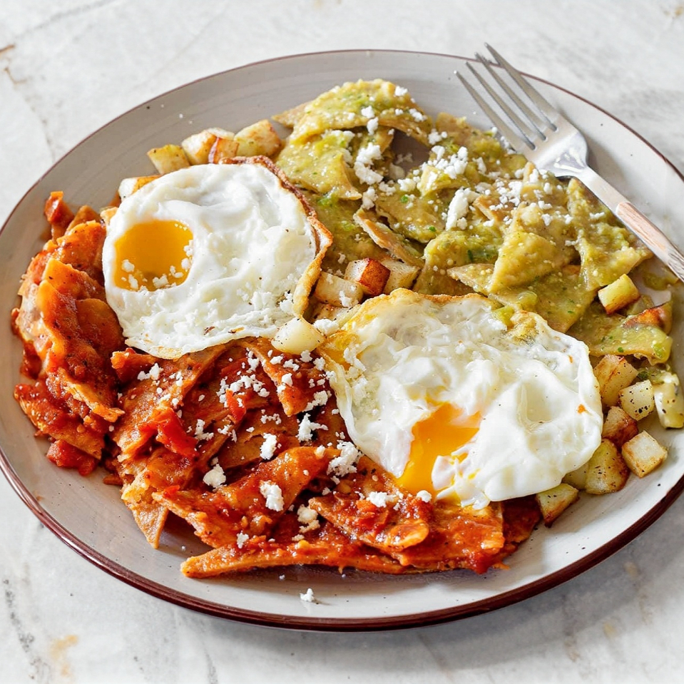 Deliciosos chilaquiles verdes y rojos de salsa tatemada