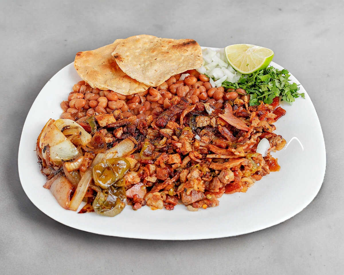1 Porción Personal Incluye aproximadamente 220 g en total: 200 g de carne a tu elección Frijoles Salsa a tu gusto 12 tortillas de maíz Vegetales frescos: cebolla, cilantro y limón