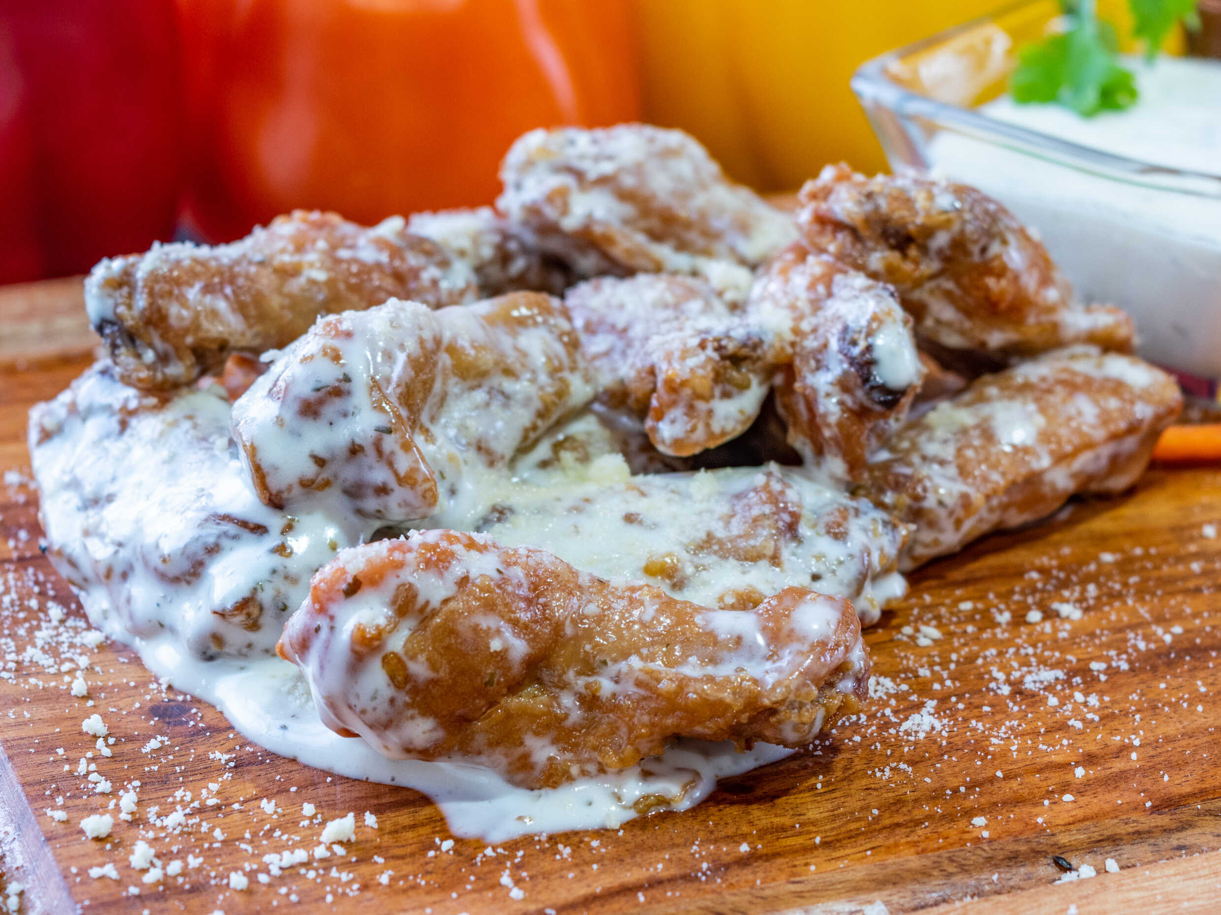 13 a 15 piezas de jugosas y crujientes alitas de pollo.