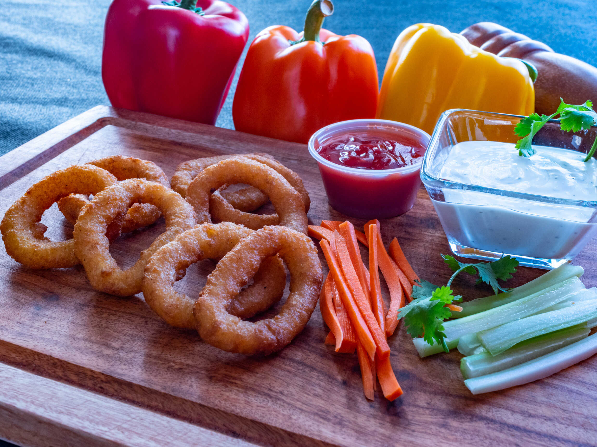 8 Piezas de crujientes y deliciosos aros de cebolla empanizados.