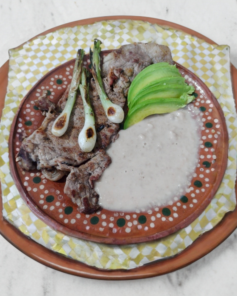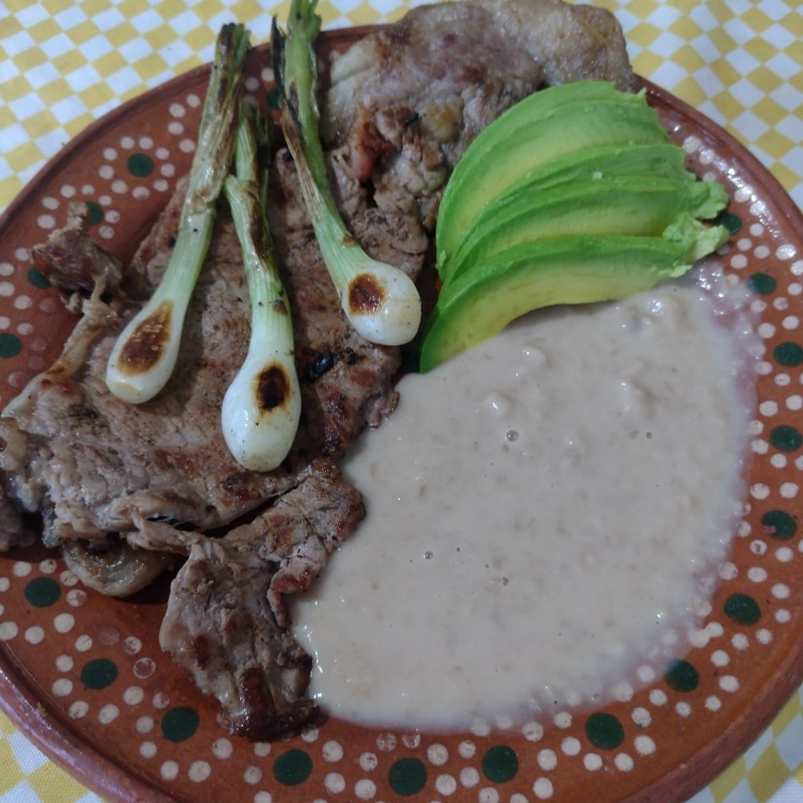 Bistec de peinecillo asado acompañado de frijoles, ensalada y tortilla hechas a mano