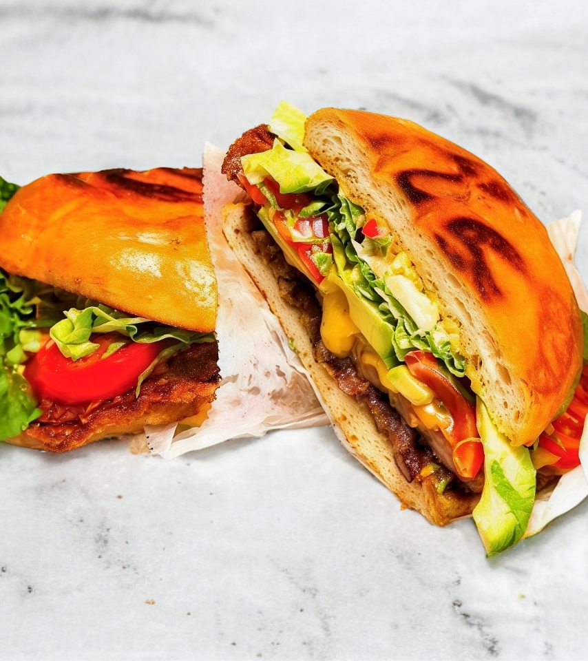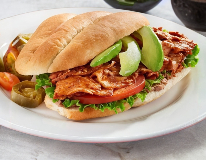 Lonche de milanesa de res acompañado de jitomate cebolla y aguacate