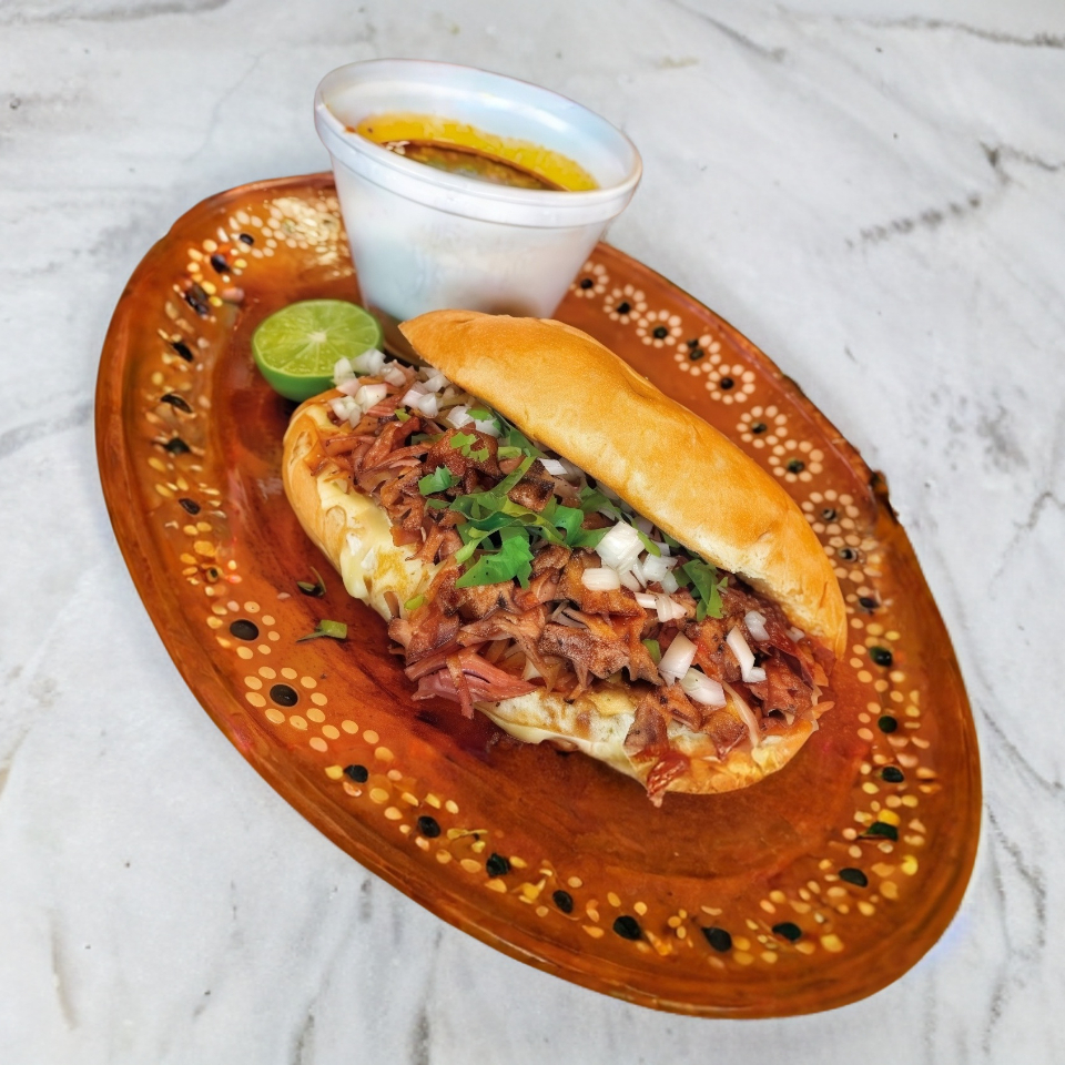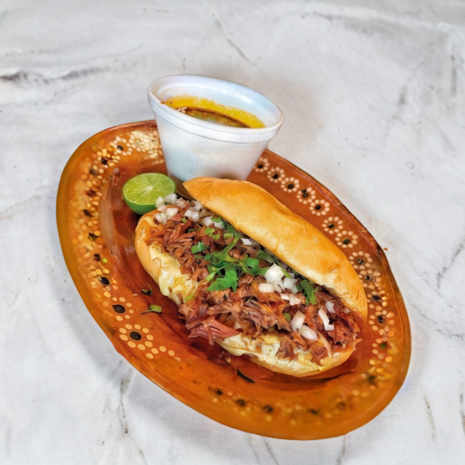 Lonche De BIRRIA*1 + Consomé De BIRRIA (180 ml)*1 + Elige tu Refresco 400 ml*1 (Combo personal)