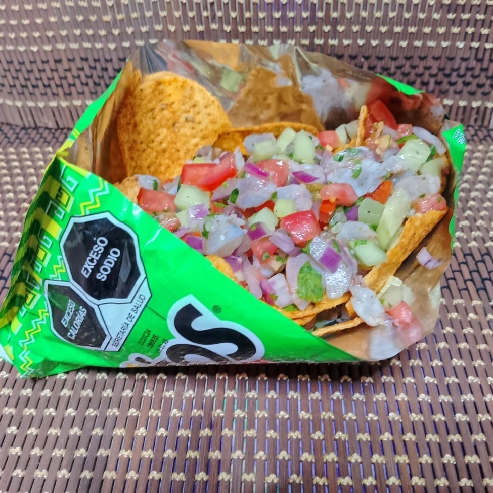 Tostilocos con Ceviche Camarones
