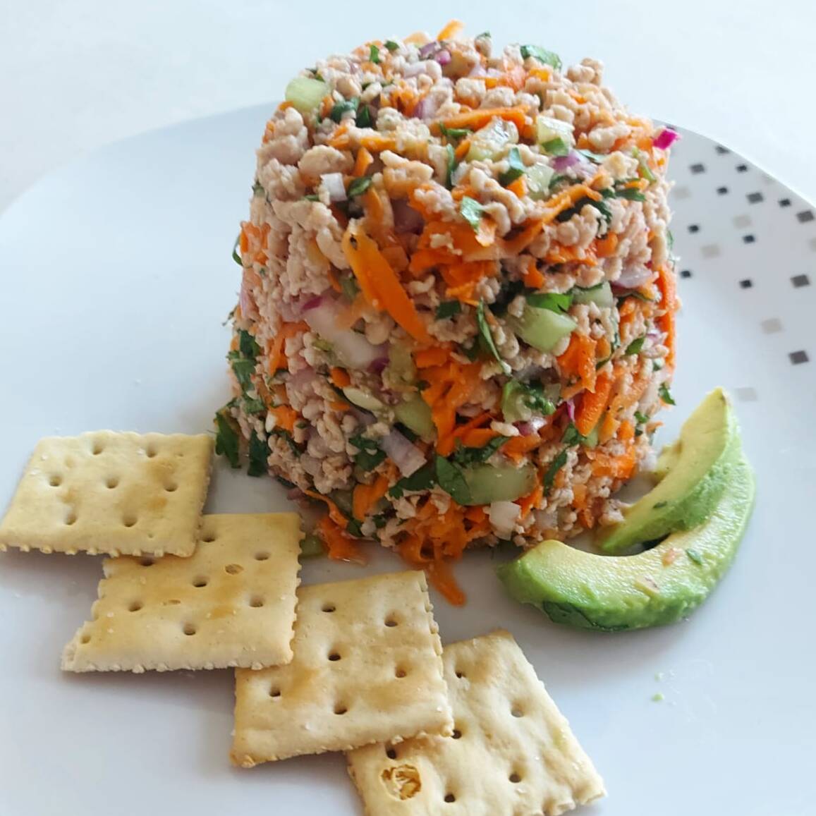 Pescado, pepino, jitomate, zanahoria, cebolla morada y cilantro, acompañada de 6 tostadas.