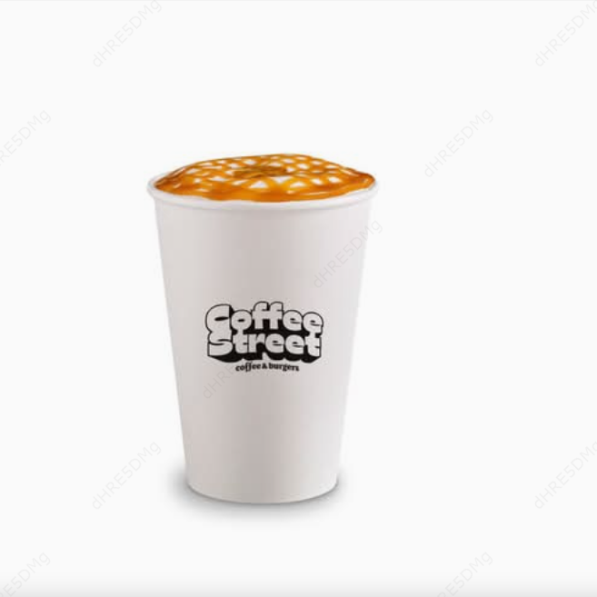 Delicioso toque de vainilla mezclado con leche vaporizada, coronado con un shot de espresso y decorado con una rejilla de caramelo.
