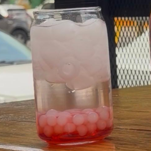 Soda Italiana de Cereza con deliciosas bolitas explosivas de lichi, ideal para refrescarte