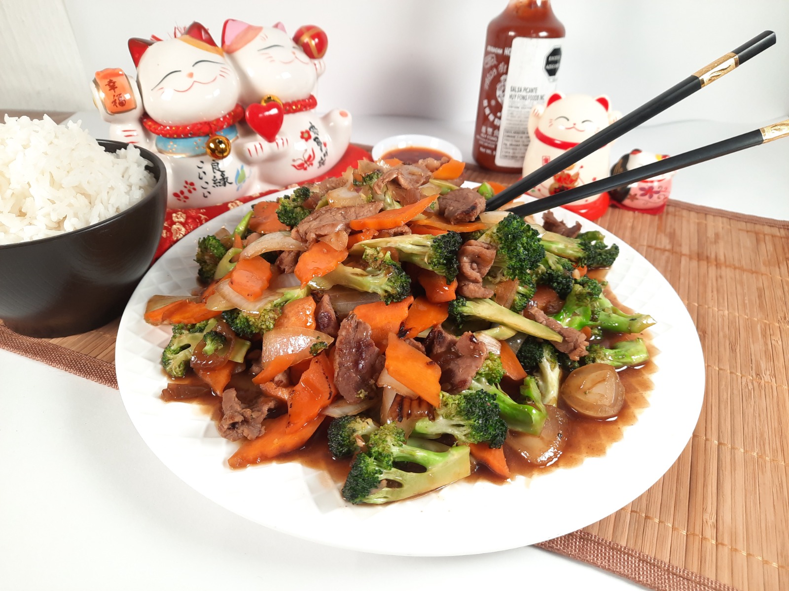 Platillo salteado con brócoli, morrón rojo, morrón verde, cebolla, apio, zanahoria, baby corn y whater chestnuts.