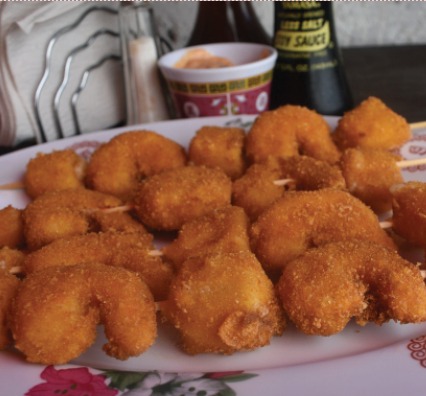 Arroz al vapor combinado con aderezo de masago y surimi. Coronado con camarones empanizados y cubitos de aguacate con un poco de ajonjolí y anguila sauce.