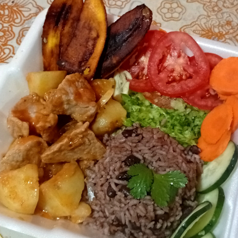 Fricase de cerdo*1 + Arroz congrí*1 + Limonada natural*1 + Plátano frito*1