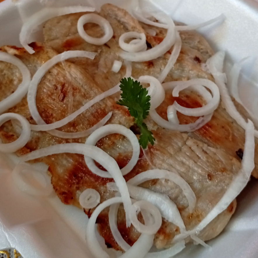 Bistec de cerdo encebollado