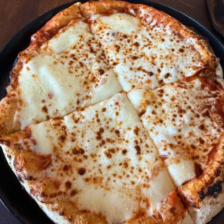 Pizza de 25cm con salsa pomodoro y queso mozzarella, en masa artesanal de alta proteína y fermentación lenta.
