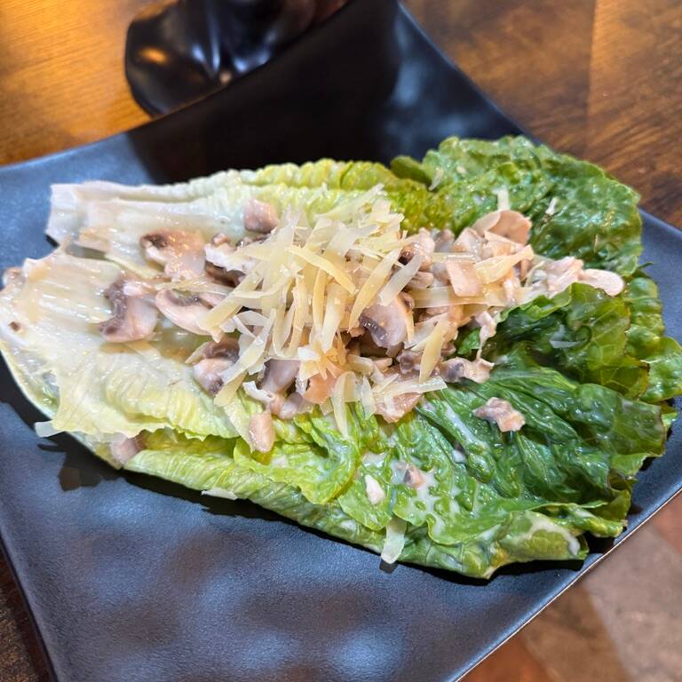 Lechuga dulce, champiñones, queso parmesano y aderezo.