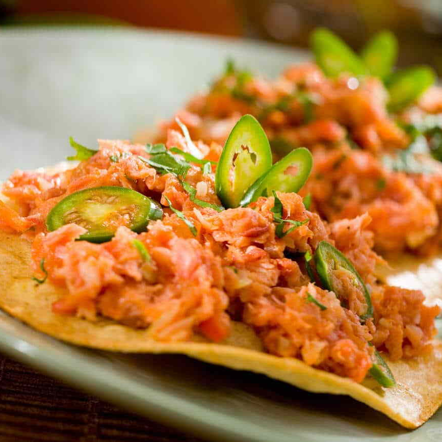 Chicharrón de Atún, acompañado de guacamole, Tortillas y Pico de Gallo.