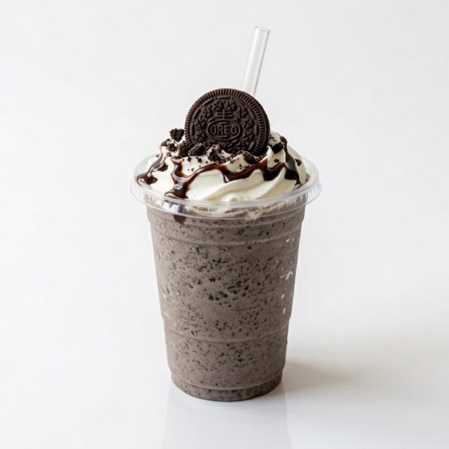 Deliciosa mezcla helada y cremosa con trozos reales de galleta Oreo. Coronado con una suave nube de crema batida y más galleta encima. ¡El consentido de todos!