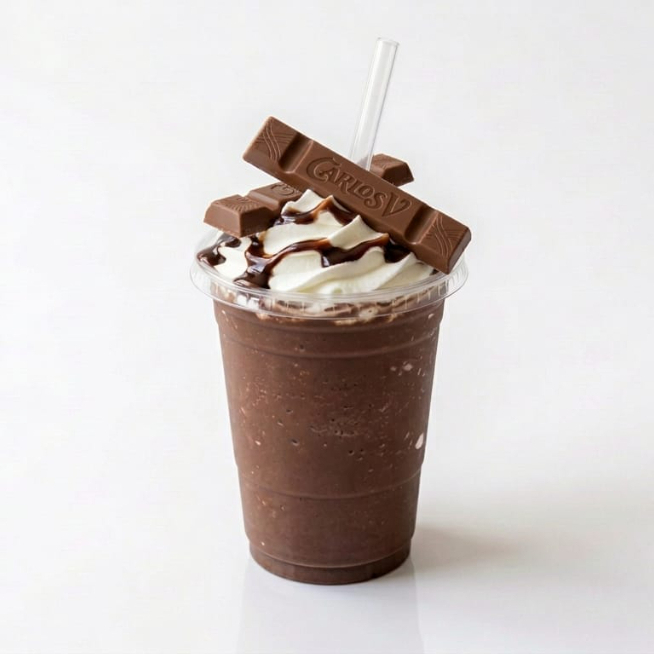 El auténtico sabor del Carlos V en una mezcla helada y cremosa. Incluye crema batida y trozos de chocolate real. ¡Un clásico irresistible!