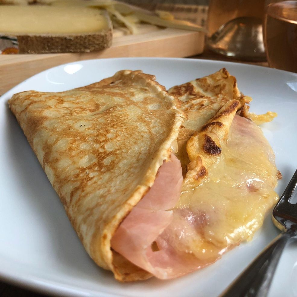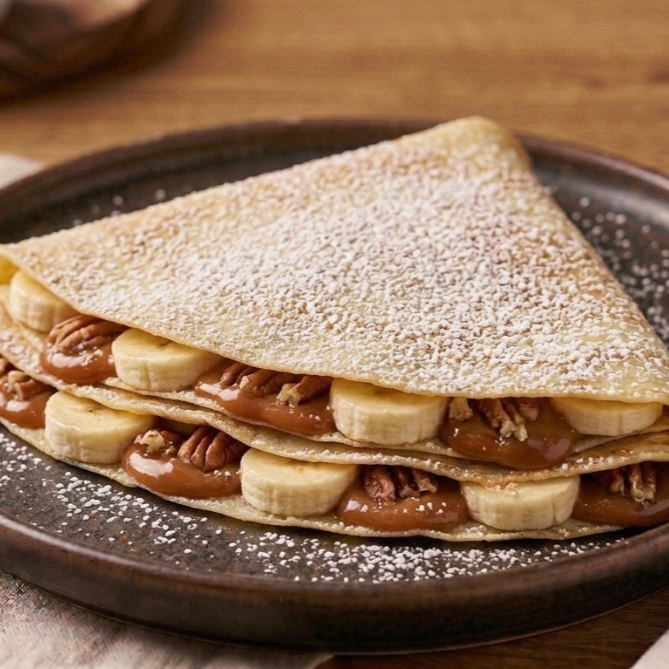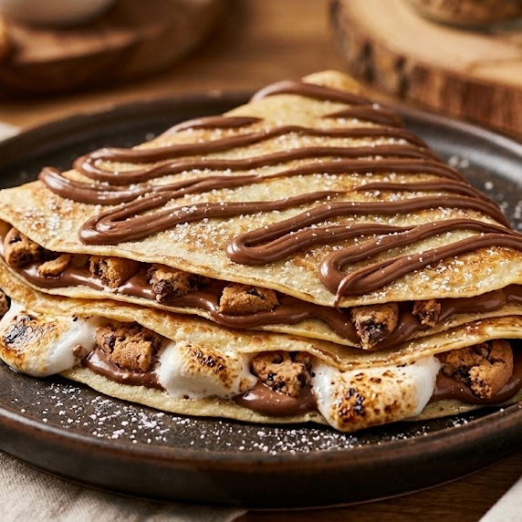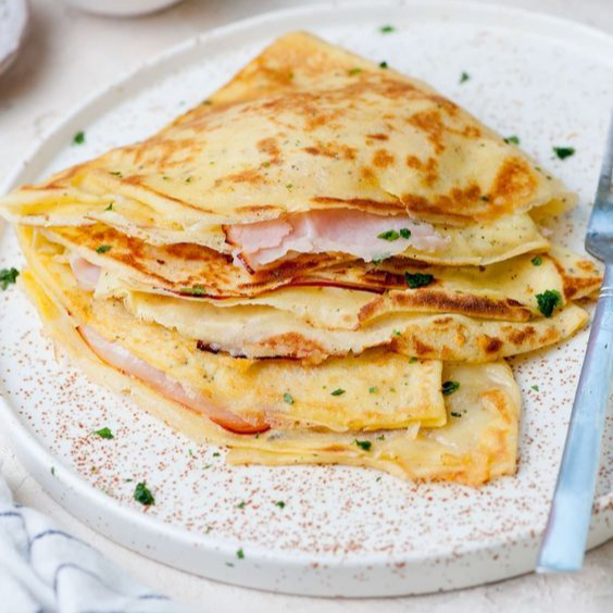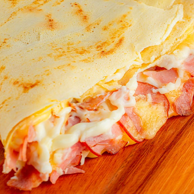 crepa suave rellena de jamón, pepperoni y queso cheddar derretido, una combinación clásica y llena de sabor.