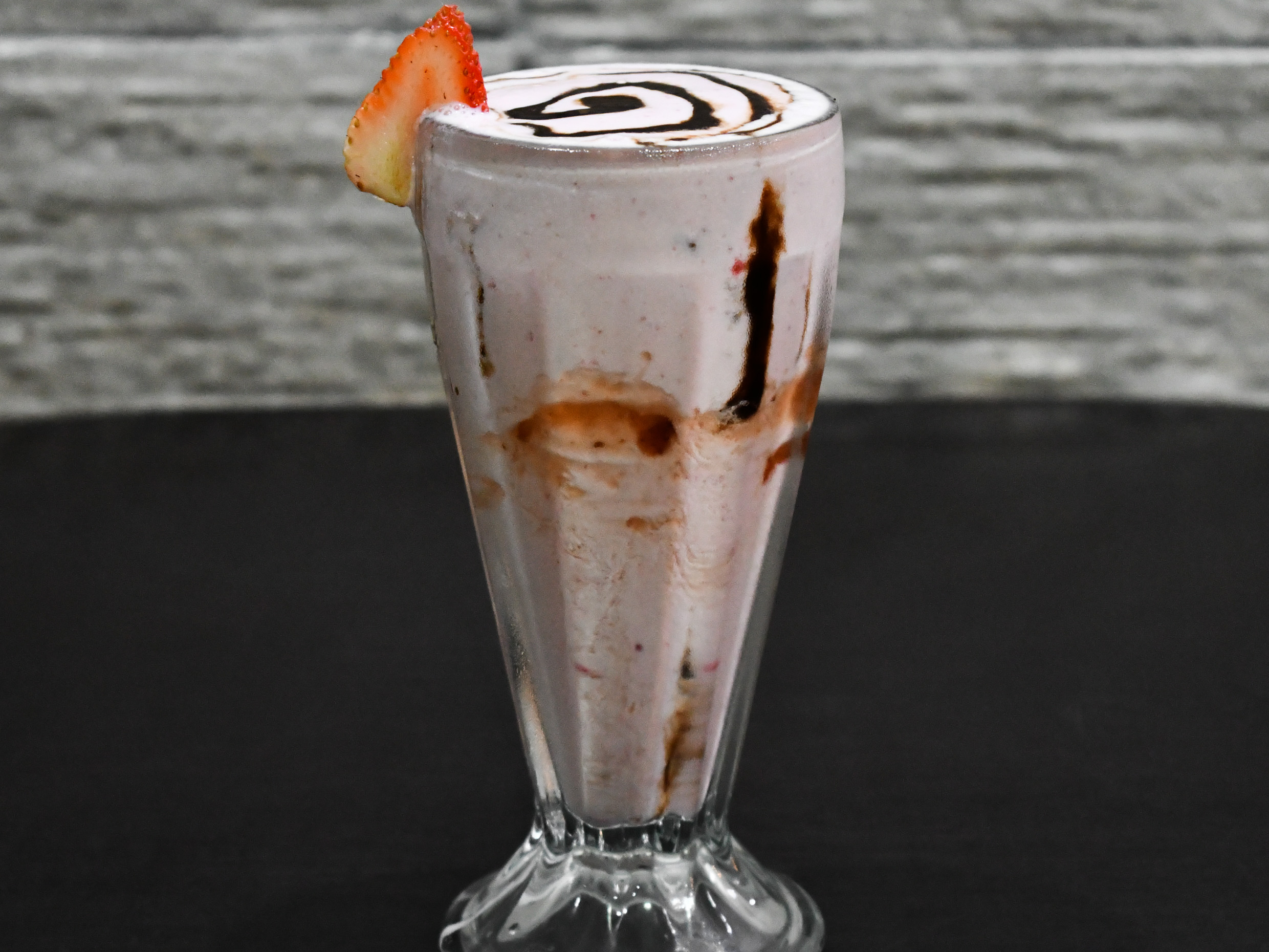 Bebida a base de helado de vainilla, leche, fruta natural y un toque de azúcar.