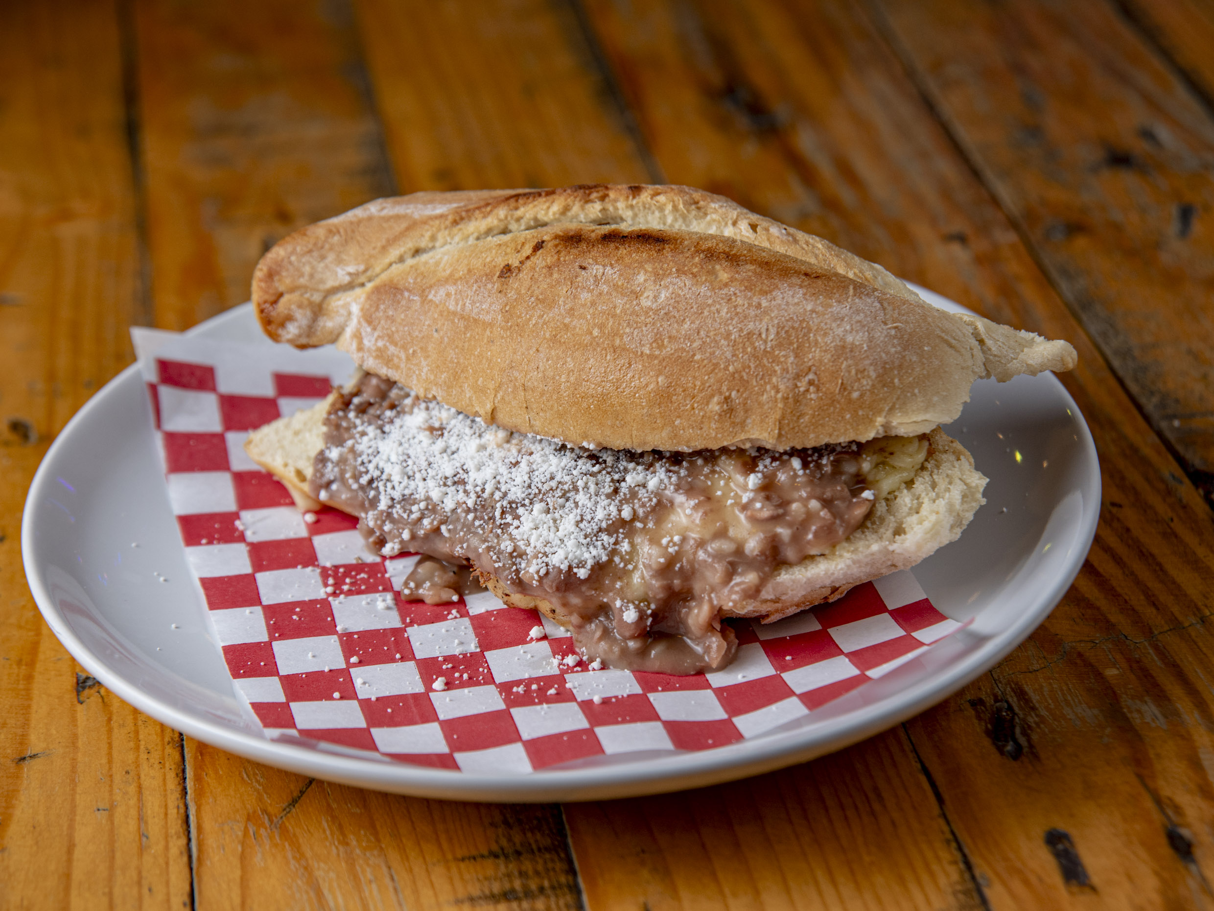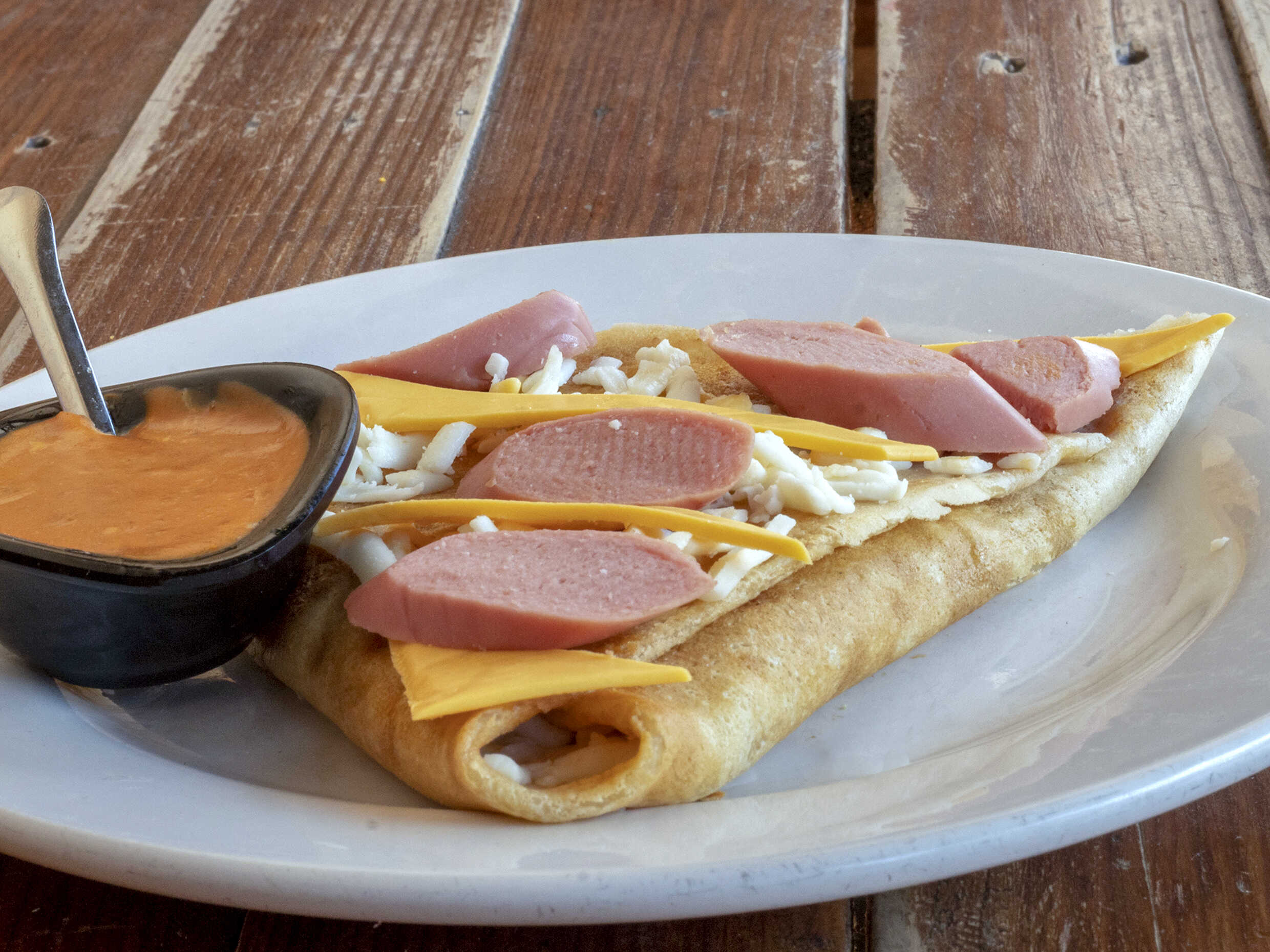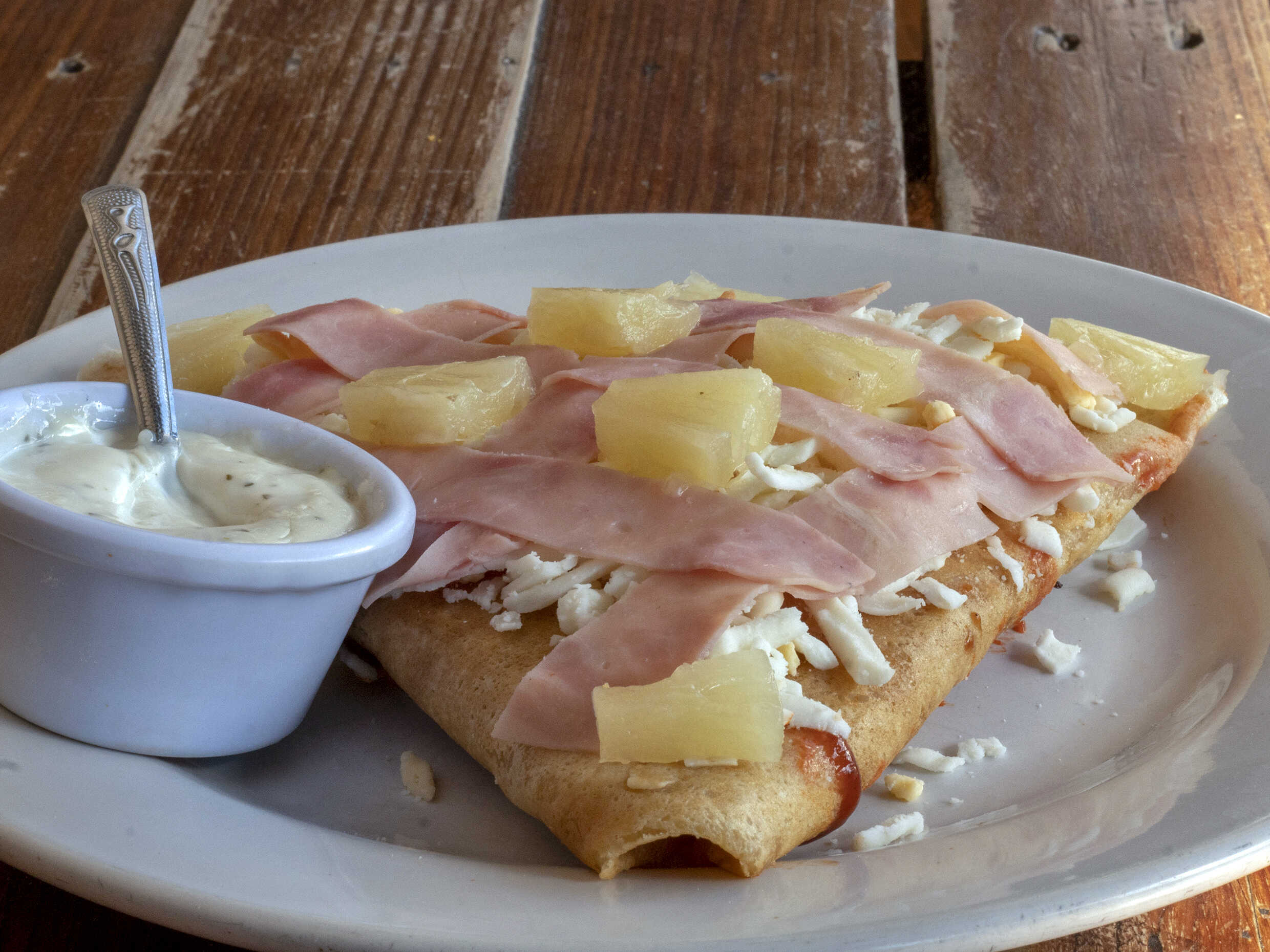 Jamón y queso manchego. Adiciones ($10): pepperoni, salami, salchicha, queso amarillo, champiñones, chorizo o piña.