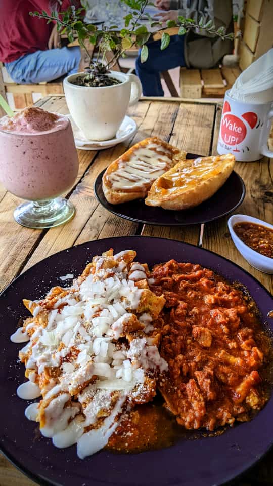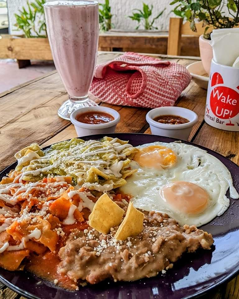 LONCHE CON BASE DE FRIJOLITOSN GUISADOS + CHILAQUILES CON SALSA DE TU PREFERENCIA