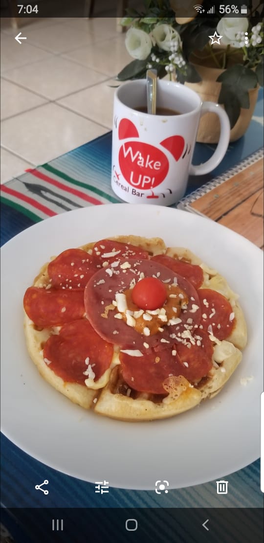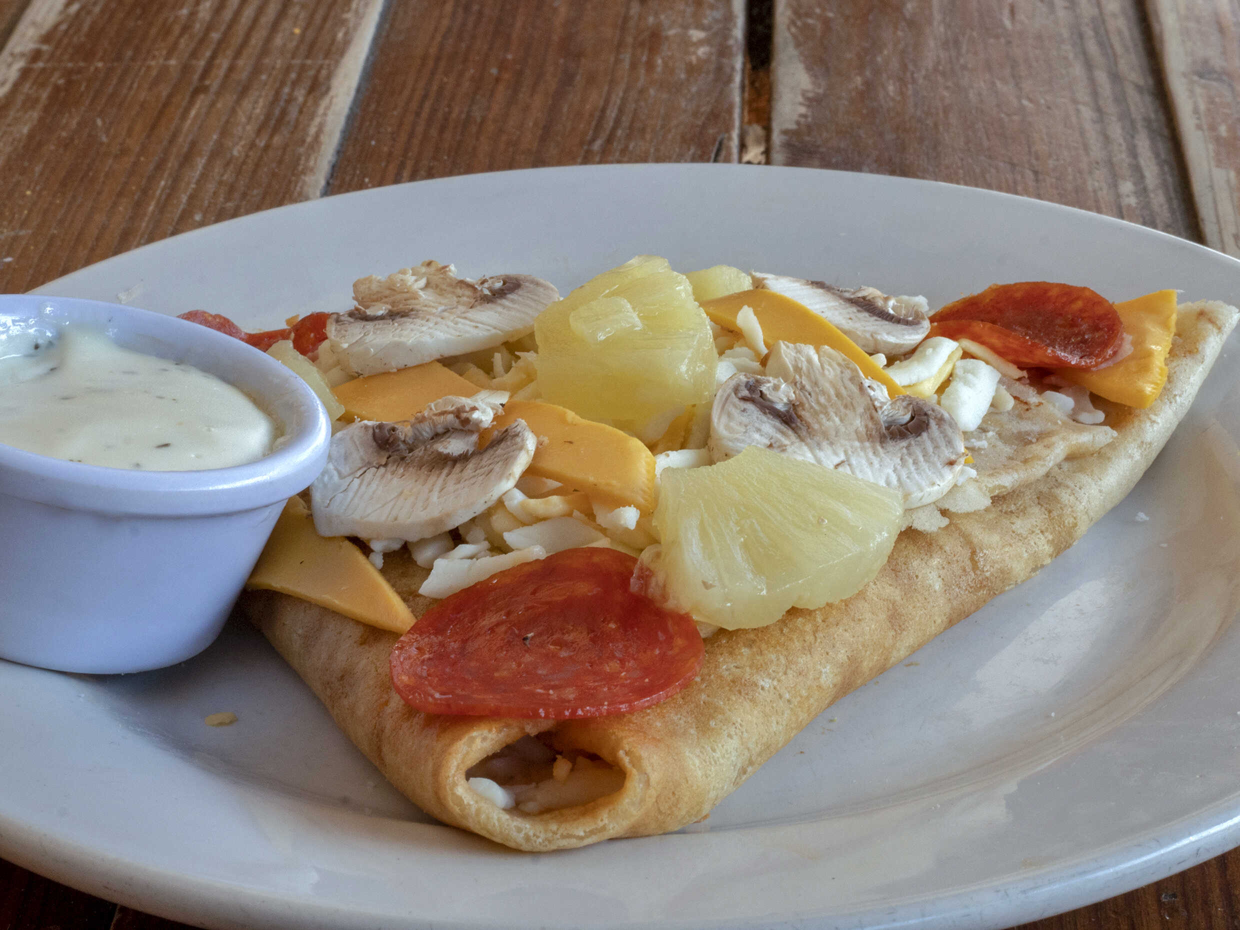 Queso manchego, Philadelphia, queso amarillo, piña, champiñones y pepperoni.